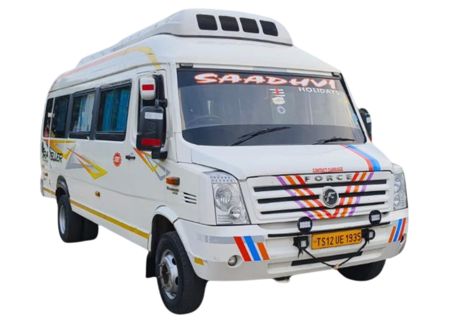 Tempo Traveller on Rent in Hyderabad is the ideal choice for comfortable and affordable group travel, whether you’re planning a family outing, a corporate trip, a pilgrimage, or a weekend getaway with friends. At Saadhvi Holidays, we offer a wide range of well-maintained and fully air-conditioned Tempo Travellers in various seating capacities—9-seater, 12-seater, 17-seater, and 26-seater—to meet the needs of every group size. Designed for long-distance and city travel alike, our Tempo Travellers are equipped with luxury push-back seats, individual AC vents, ample legroom, and spacious interiors, ensuring a smooth and enjoyable ride for all passengers. Whether you’re touring Hyderabad’s iconic landmarks like Charminar, Golconda Fort, or Ramoji Film City, or heading outstation to popular destinations like Srisailam, Tirupati, Shirdi, Vijayawada, or Warangal, our vehicles offer the perfect blend of reliability and comfort. Each Tempo Traveller comes with a professional, experienced, and courteous driver who knows the local and intercity routes thoroughly, ensuring on-time arrivals and a stress-free journey. We provide flexible rental packages, including hourly, daily, and per-kilometer pricing, along with transparent billing and no hidden charges. With a reputation built on punctuality, cleanliness, and customer satisfaction, Saadhvi Holidays is a trusted name for Tempo Traveller rentals in the city. Whether it’s for a wedding, an office team outing, a school trip, or an airport transfer for a large group, our Tempo Travellers provide a safe, stylish, and convenient travel experience every time.